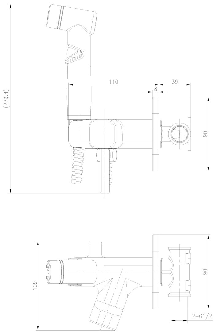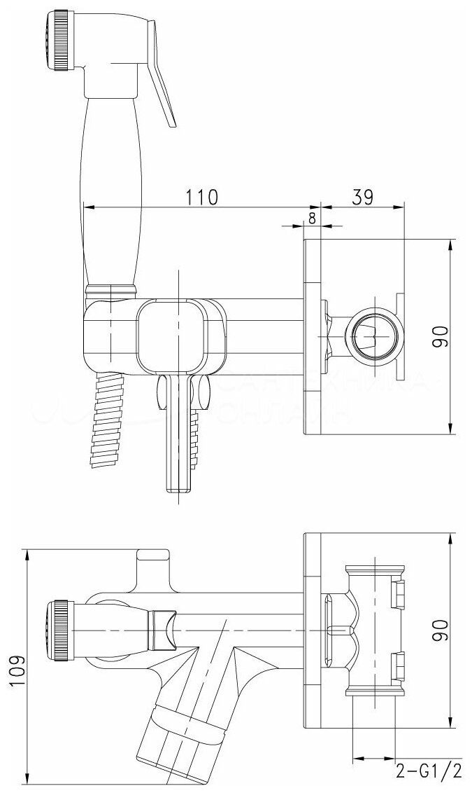 | Комплектация | душевой шланг 1,5 м с прокладками - 1 шт. / лейка гигиенического душа с нажимным механизмом - 1 шт. / корпус смесителя с керамическим картриджем и металлической рукояткой - 1 шт. / встраиваемый элемент - 1 шт. / декоративная металлическая накладка - 1 шт. / установочный винт с шестигранным углублением под ключ - 2 шт. / ключ-шестигранник - 1 шт. / паспорт / Гарантийный талон. |