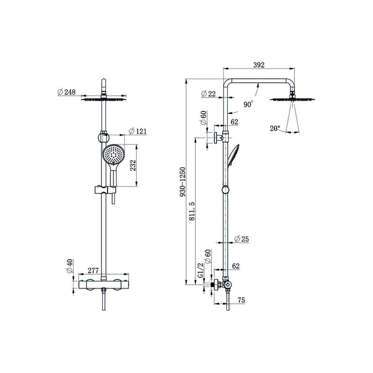 | Особенности | держатель душевой лейки / регулируемый верхний душ |