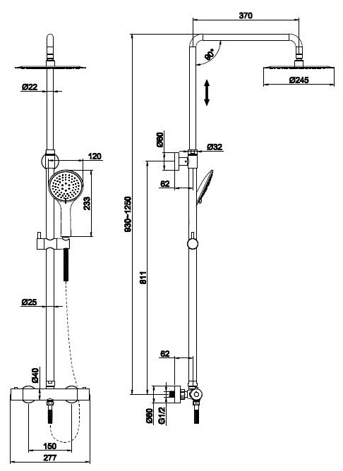| Особенности | S-образные эксцентрики / держатель душевой лейки / регулируемый верхний душ / защита от скручивания |