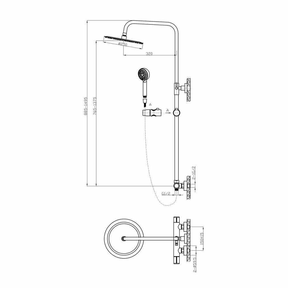 | Форма верхнего душа | круглая |