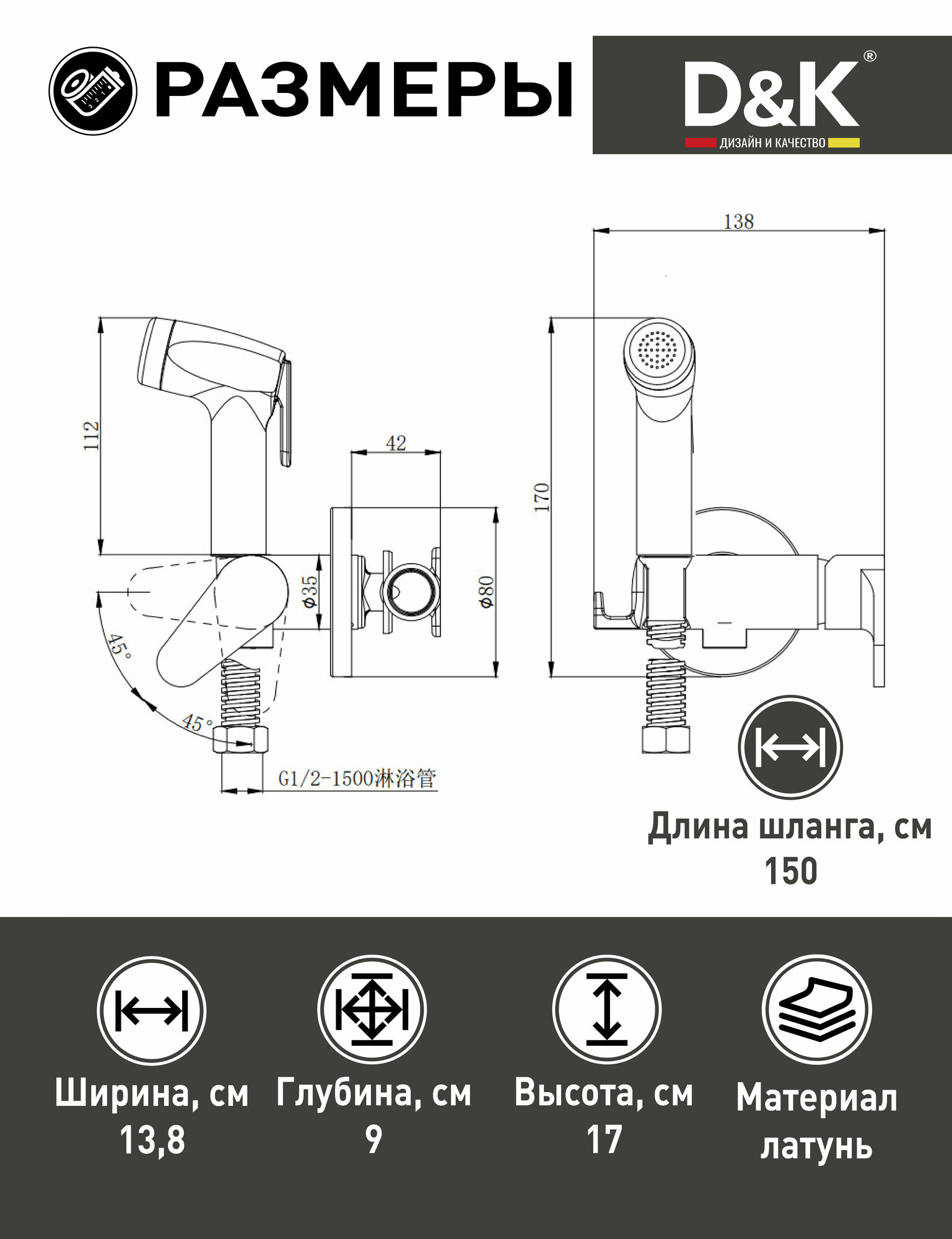 Гигиенический душ D&K Rhein.Marx, со смесителем, DA1394581 хром,