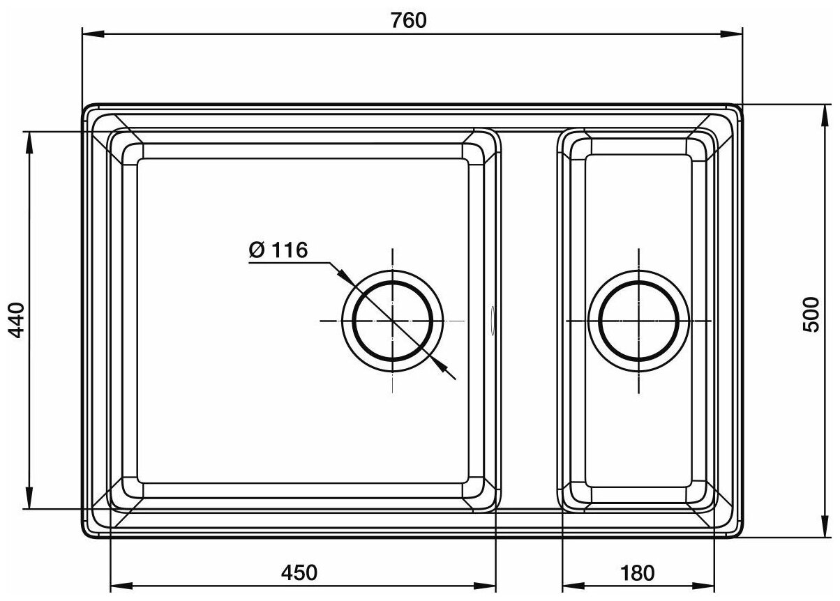 | Ширина мойки | 76 см |