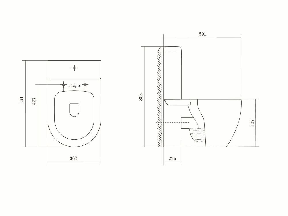Унитаз-компакт Акватек оберон 590х375х790мм, безободковый, горизонт. выпуск, с сиденьем AQ1273S-00
