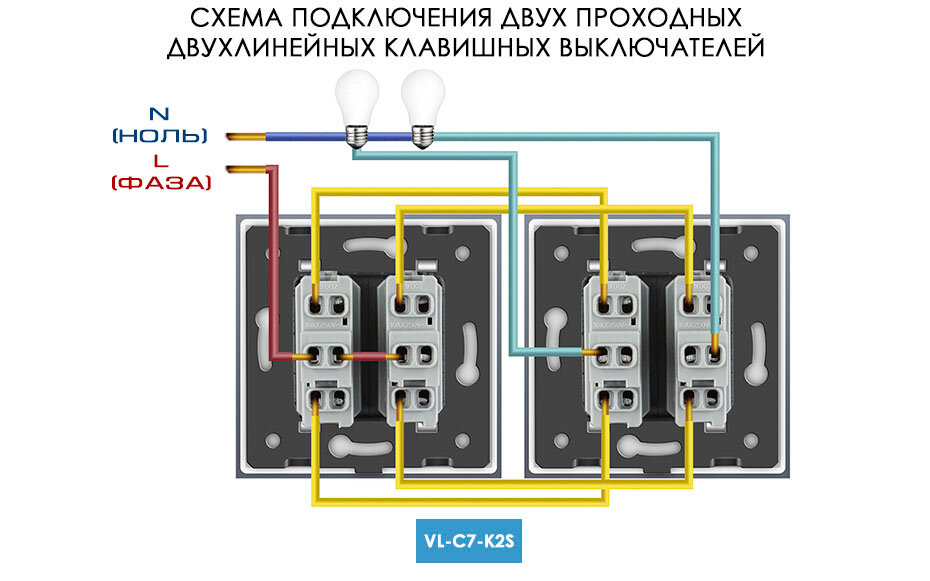 | Схема подключения выключателя | переключатель (с 2-х мест) |