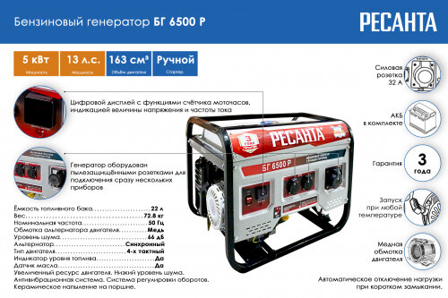 Генератор бензиновый РЕСАНТА БГ 6500 Р интересное: