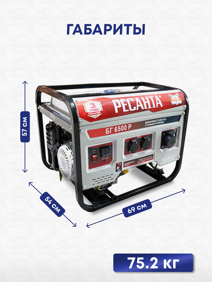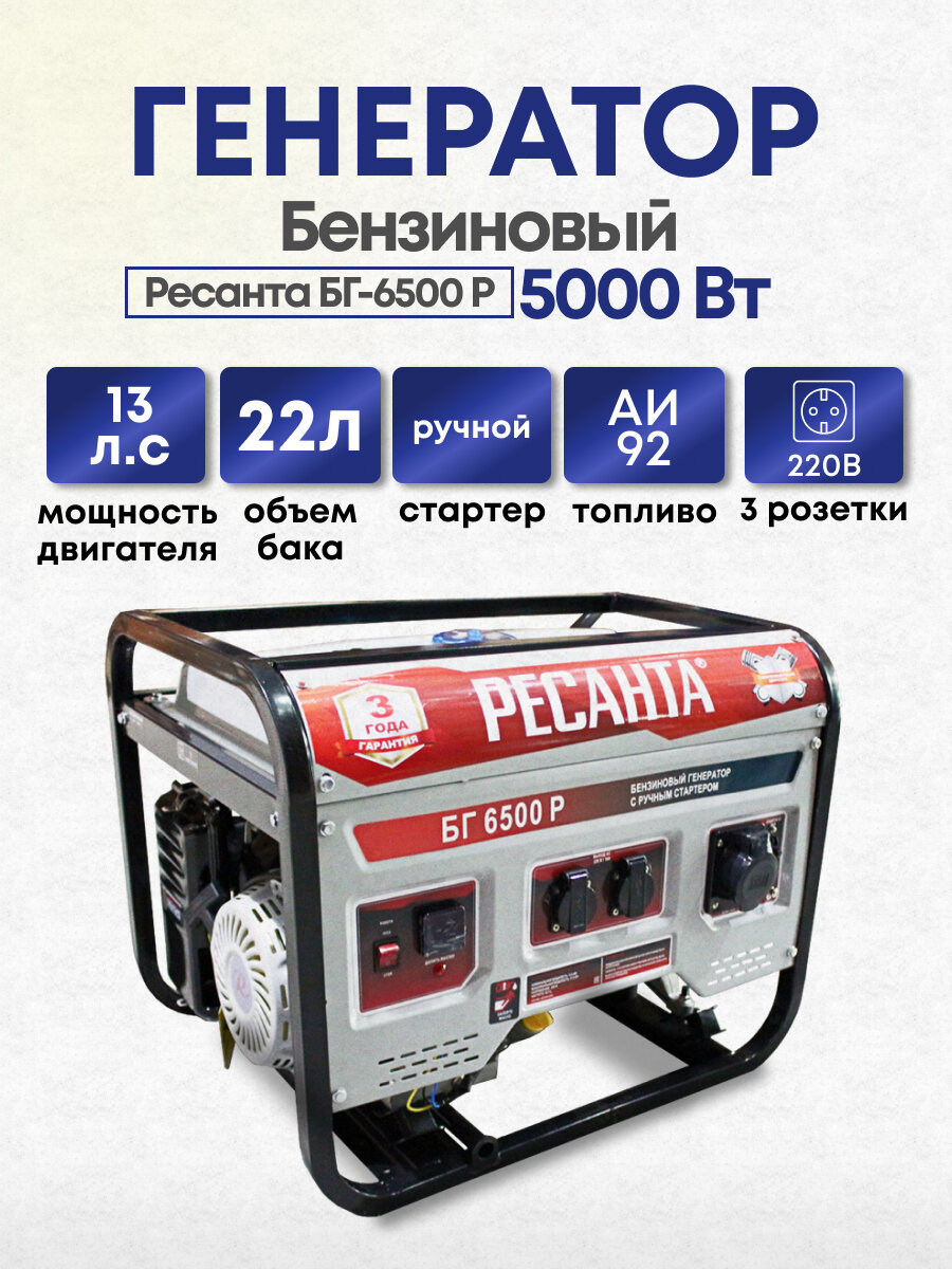 Бензиновый генератор РЕСАНТА БГ 6500 Р, 220 В, 5кВт [64/1/45]