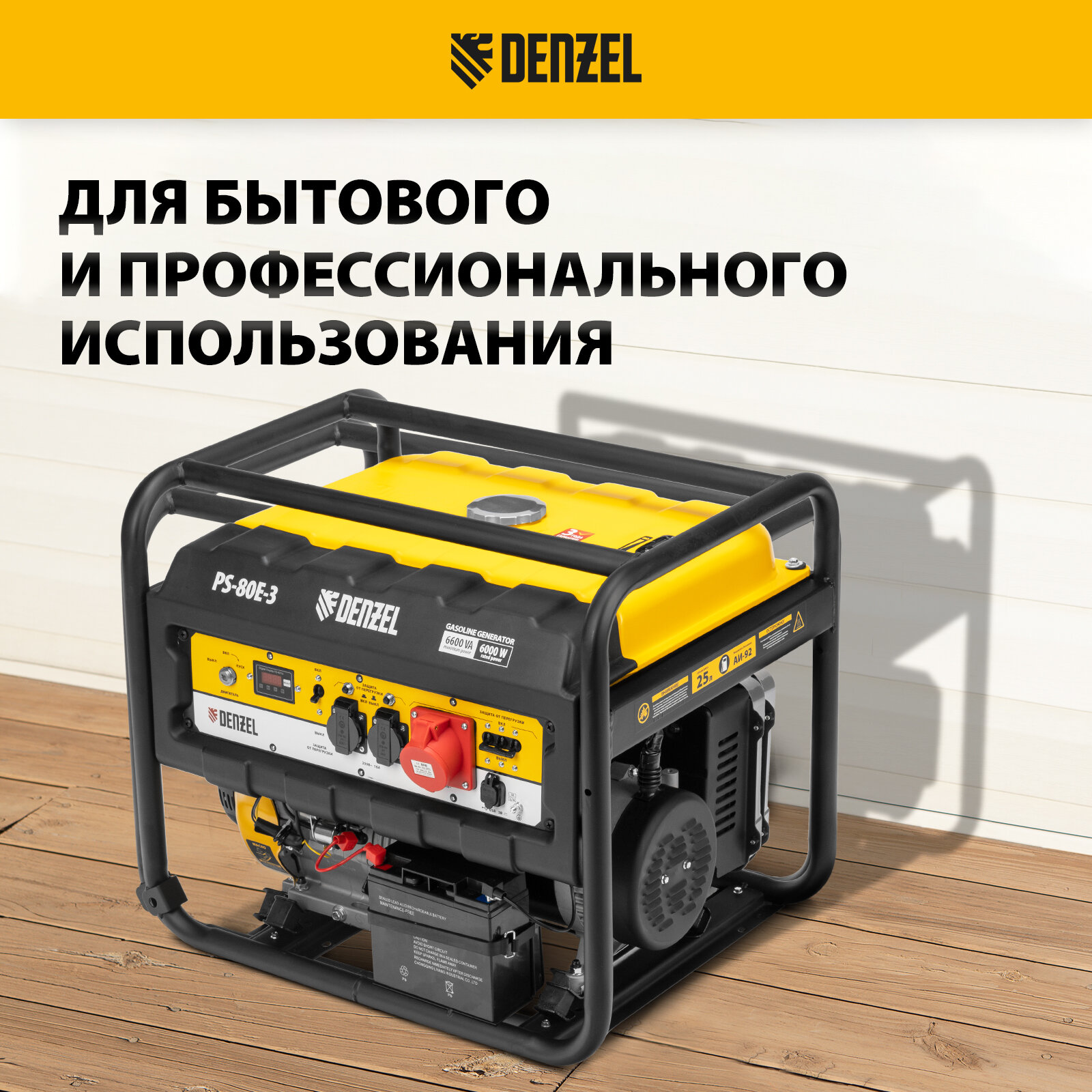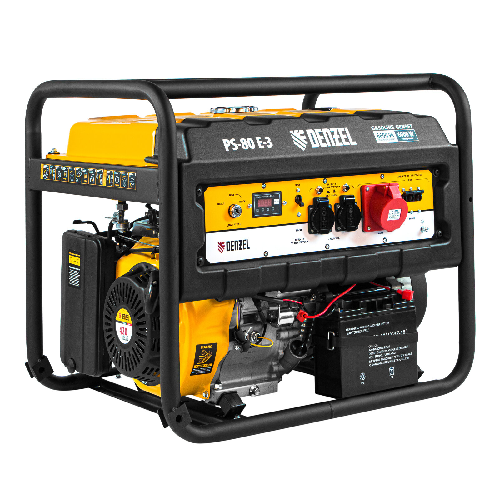 Генератор бензиновый DENZEL PS 80 E-3, 6.6 кВт, 400 В, 25 л, электростартер