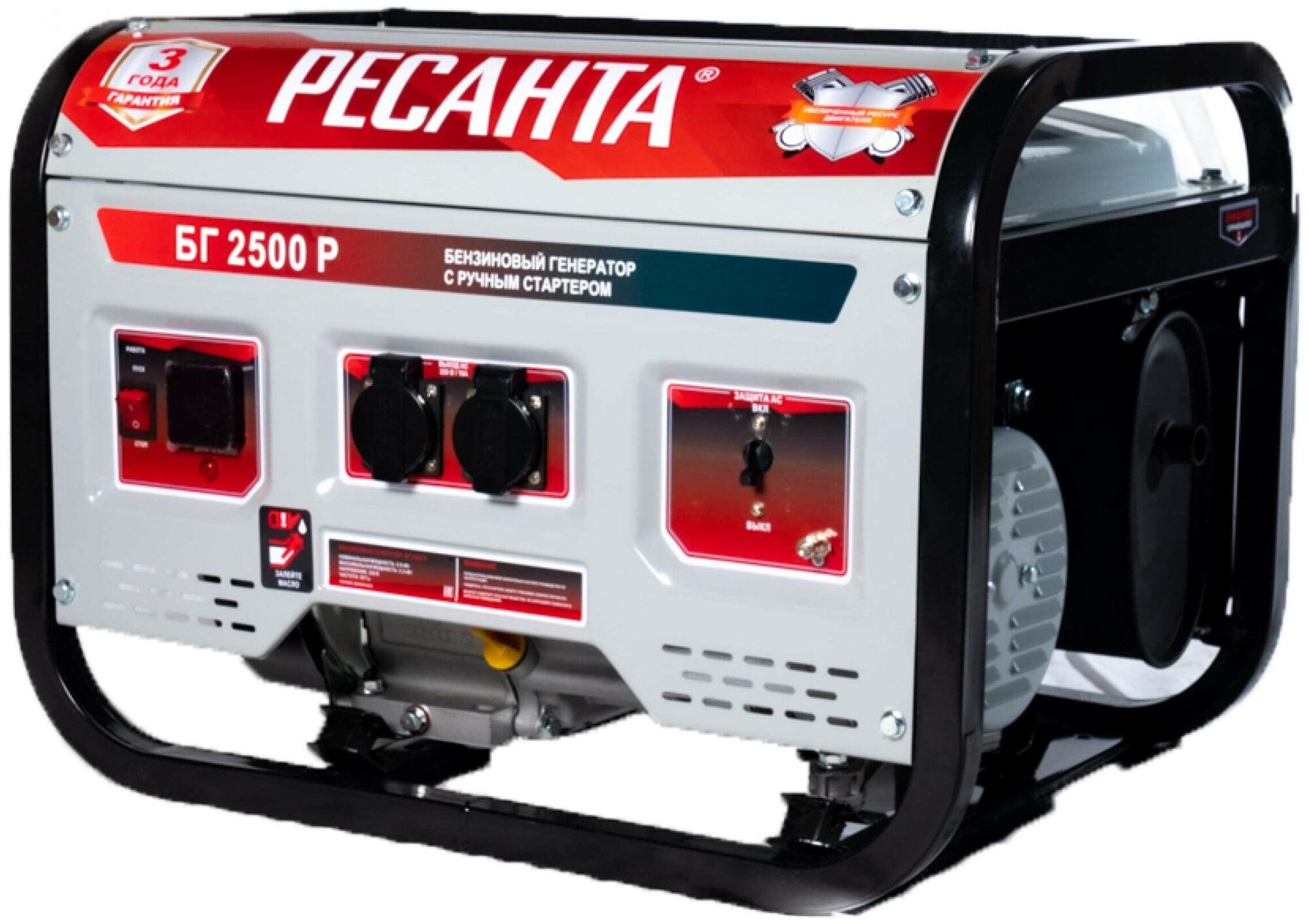 Генератор бензиновый БГ 2500 Р Ресанта с ручным стартером, максимальная мощность 2200 Вт