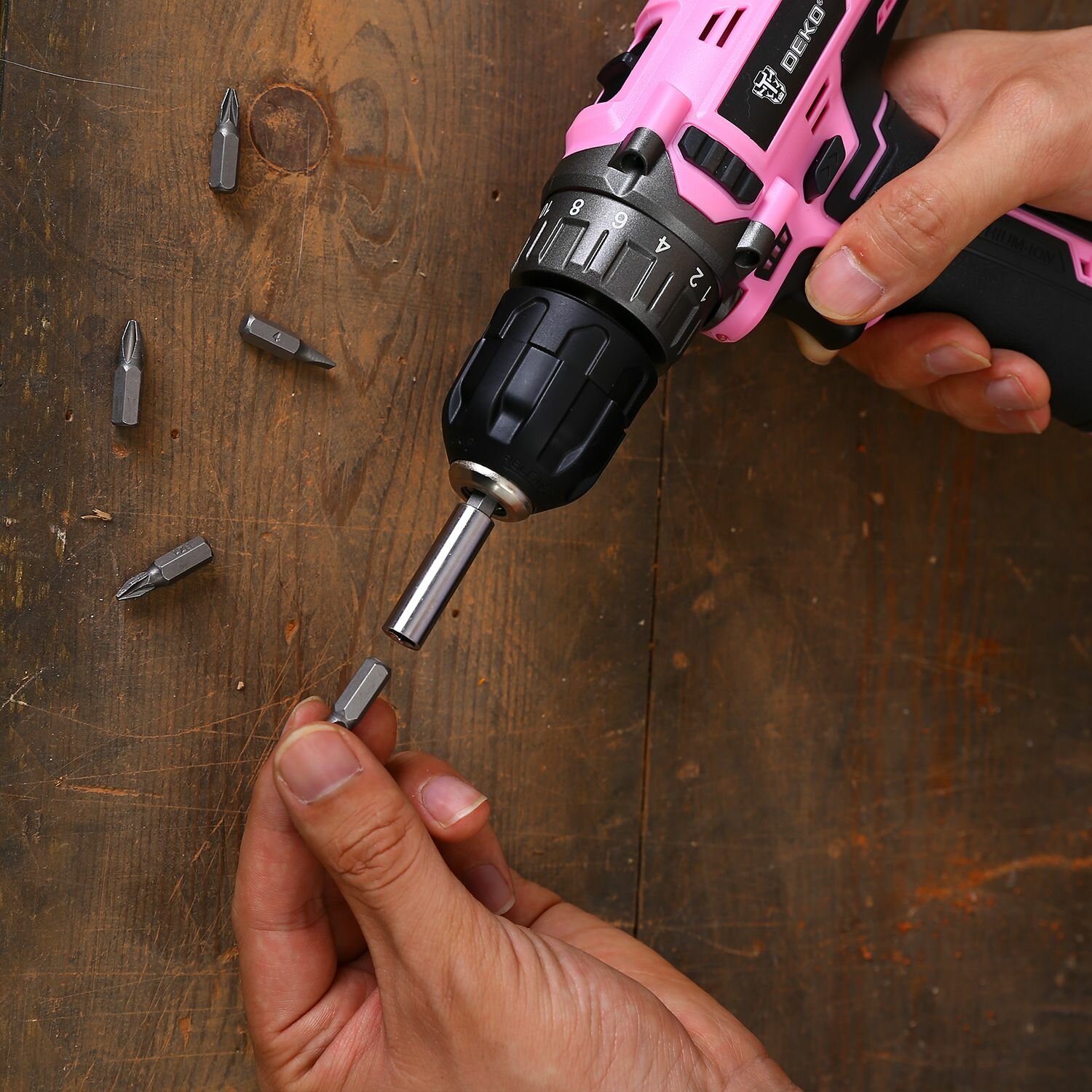Дрель-шуруповерт аккумуляторная DEKO GCD12DU3 PINK SET2 оснастка 13 шт (063-4171)