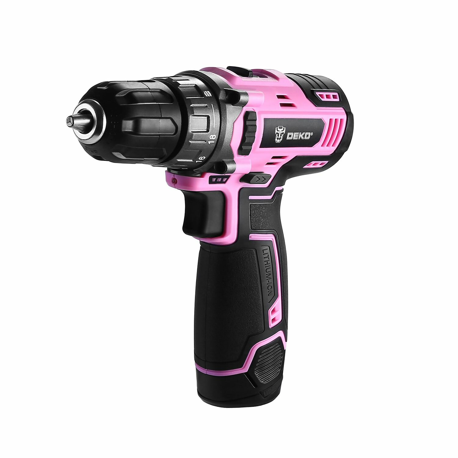 Дрель-шуруповерт аккумуляторная DEKO GCD12DU3 PINK, 1*12В 1.5Ач Li-Ion, оснастка 13 предметов