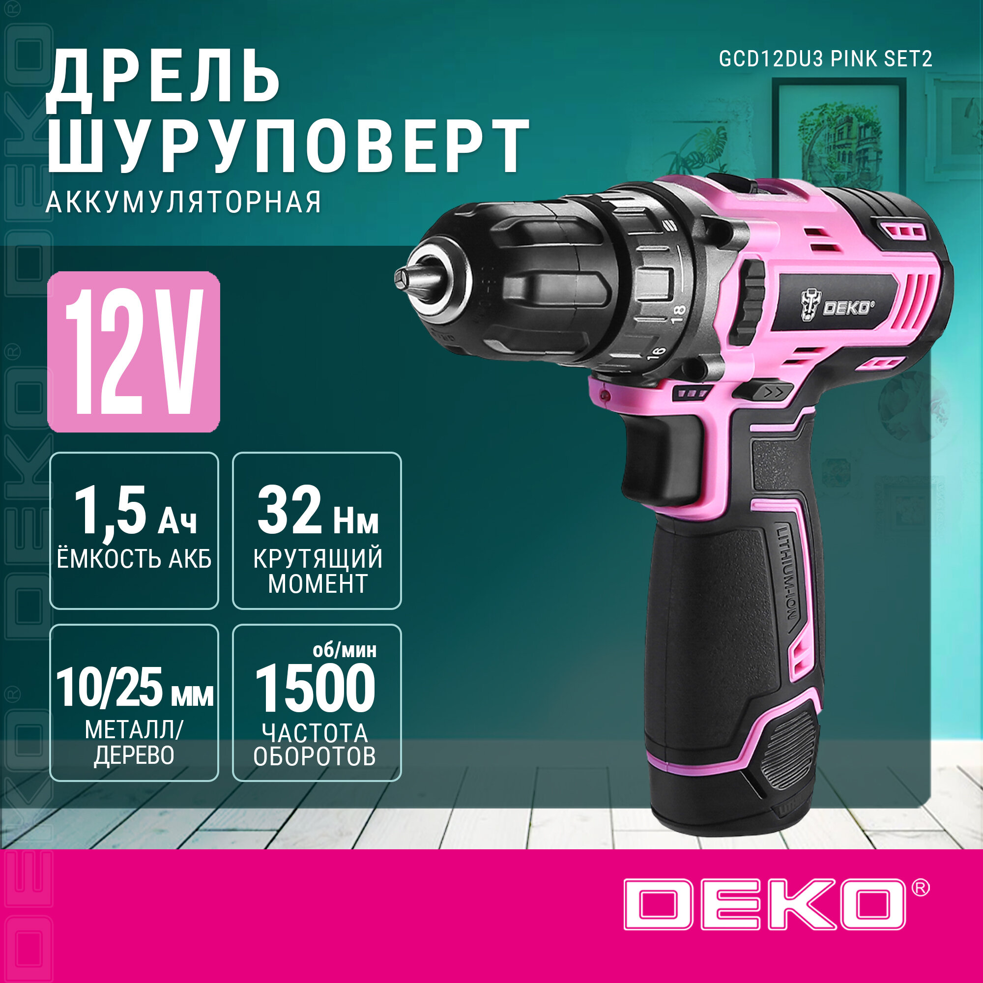 Купить Аккумуляторная дрель-шуруповёрт DEKO GCD12DU3 PINK SET2 + оснастка 13 шт, 12В, 1х1.5Ач, з/у