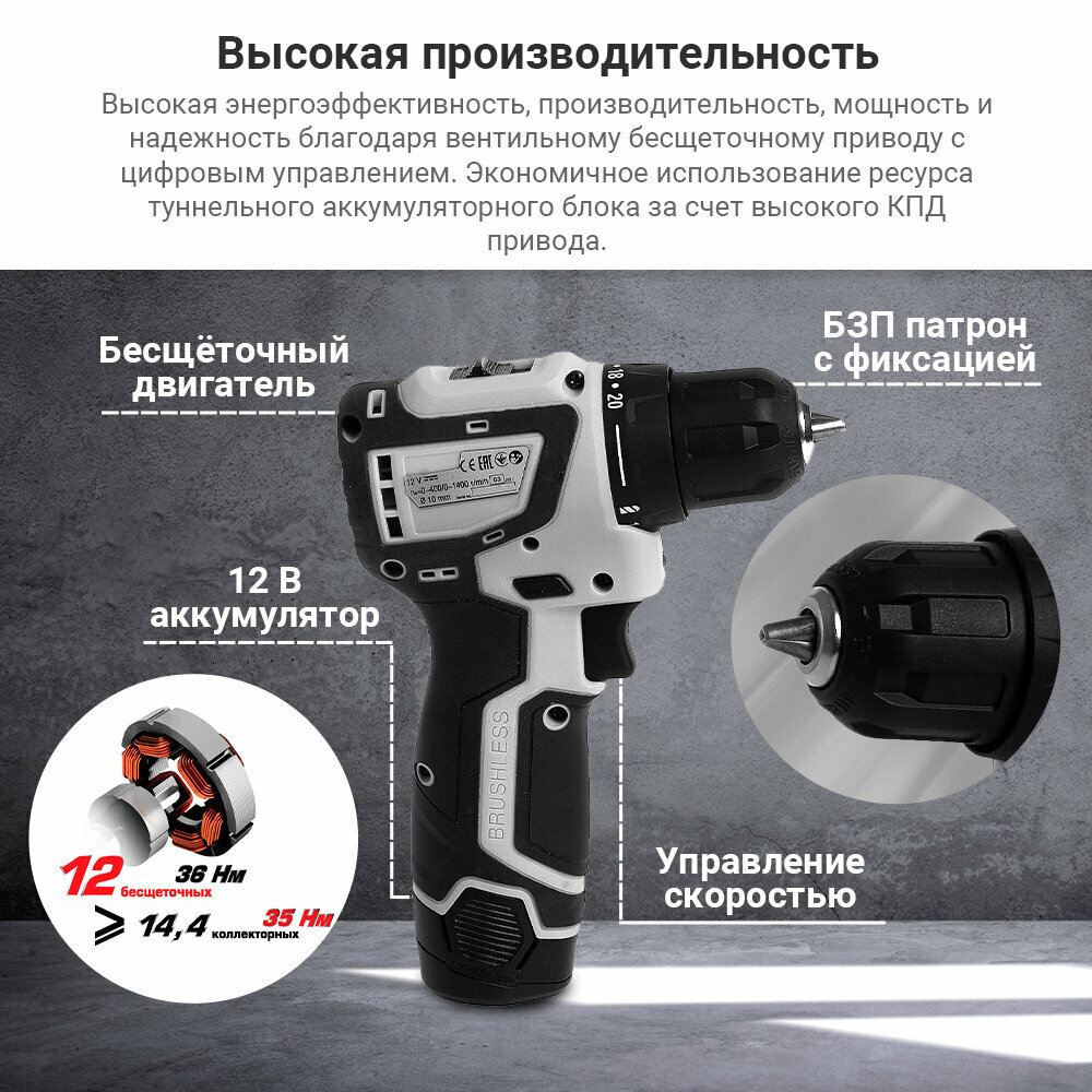 Бесщеточная аккумуляторная дрель-шуруповерт ИНТЕРСКОЛ минимакс ДА-10/12В 687.0.0.70, без АКБ и ЗУ интересное: