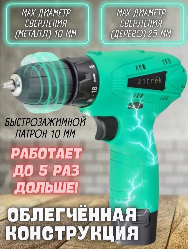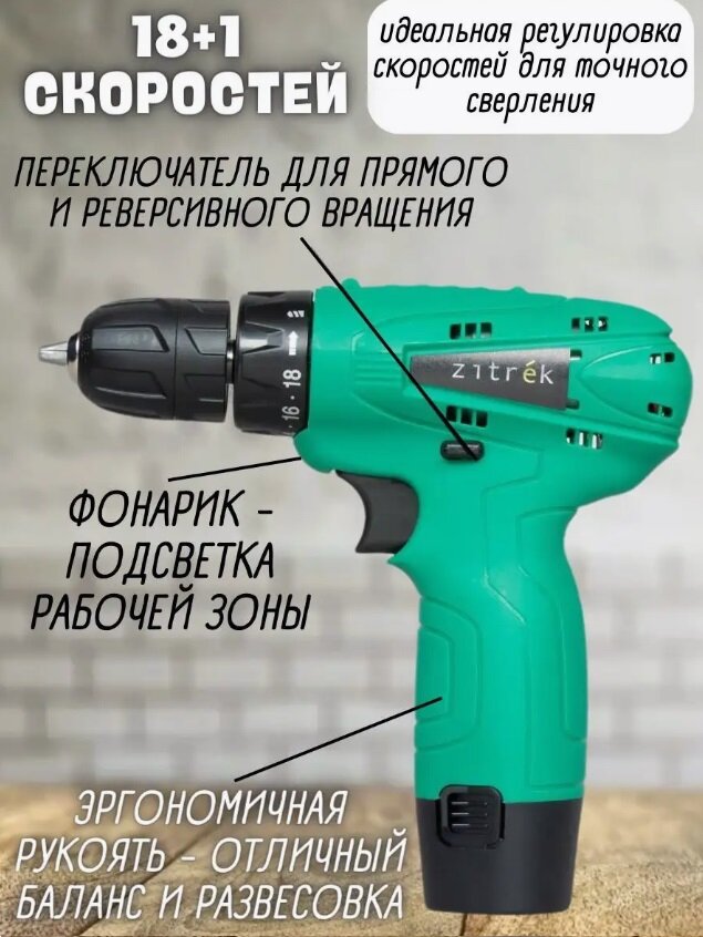Аккумуляторная дрель-шуруповерт Zitrek Green12