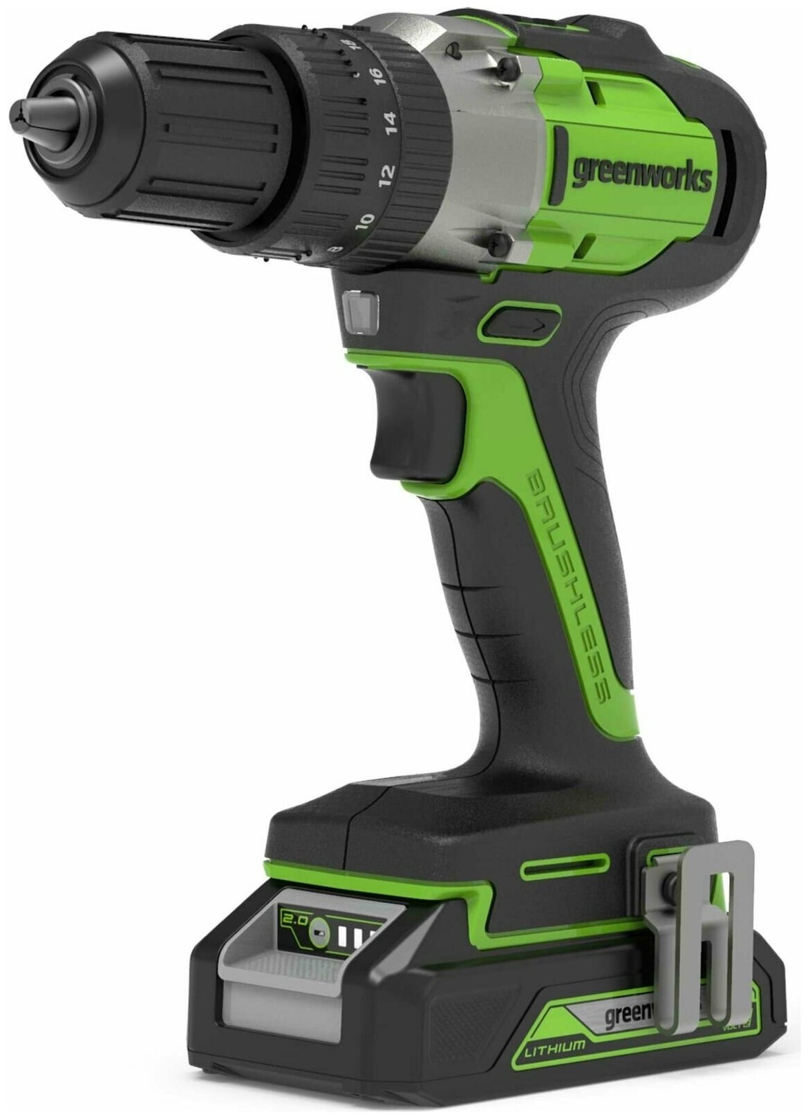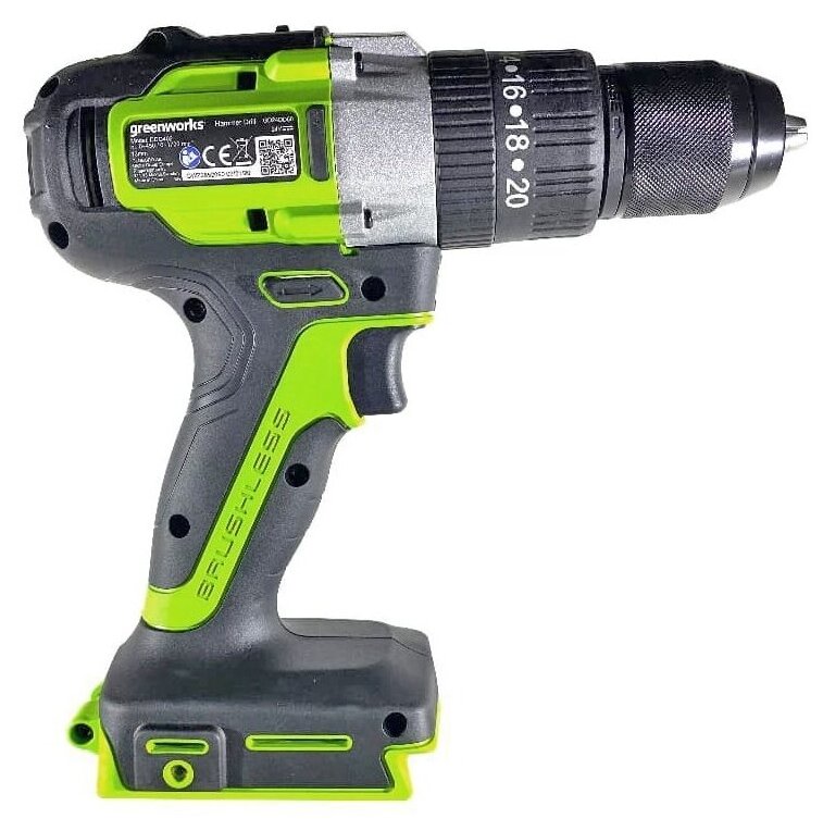 Аккумуляторная дрель б/щеточная greenworks GD24DD60, 24В, 60Нм ,с АКБ 2а.ч. и ЗУ 3704107UA