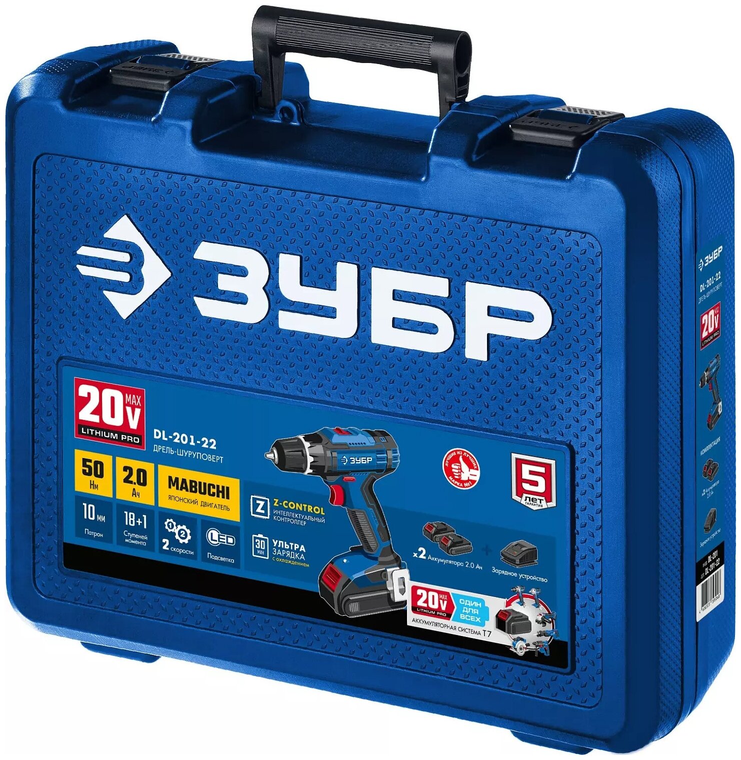Дрель-шуруповерт Зубр DL-201-22, 2 АКБ (2 Ач), в кейсе, серия профессионал