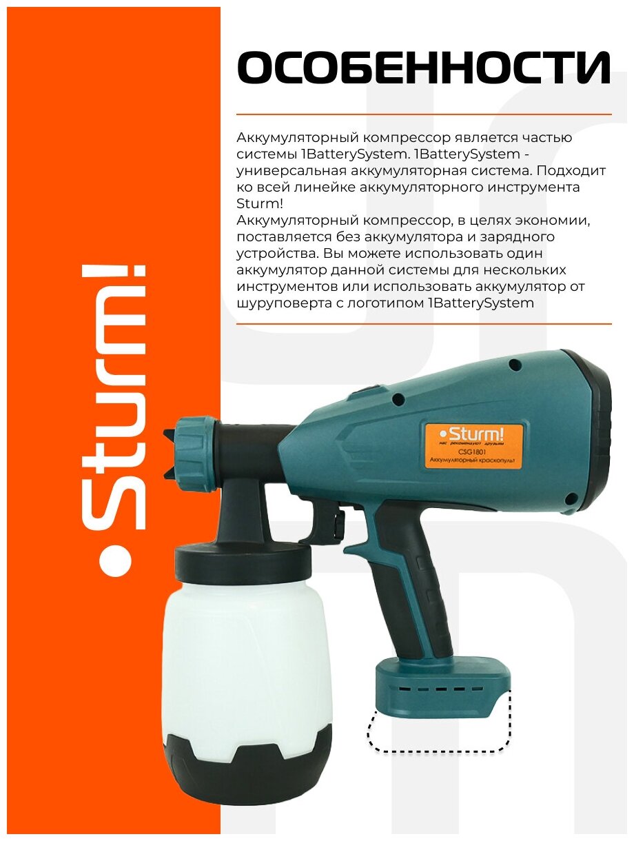 Аккумуляторный краскопульт Sturm! CSG1801 1BatterySystem Sturm!