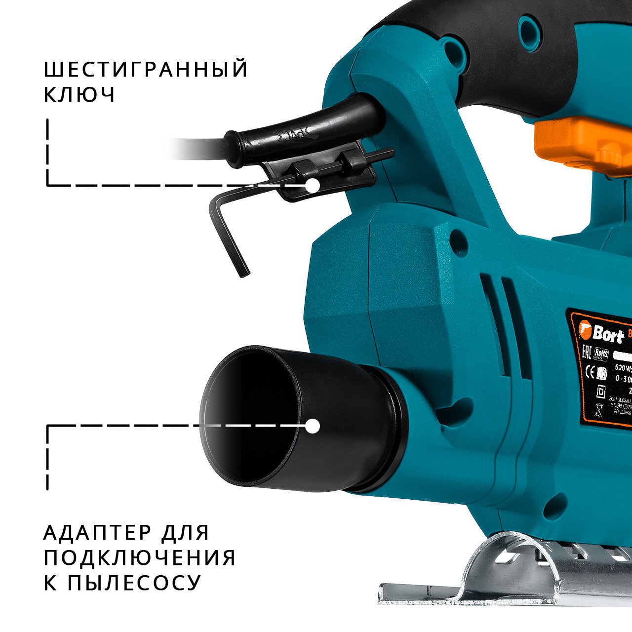 Электролобзик Bort BPS-670-Q, 620 Вт синий