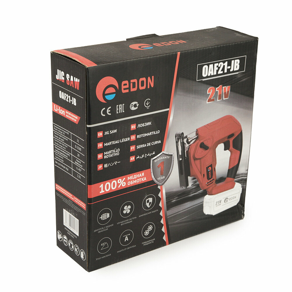 Электролобзик аккумуляторный Edon OAF21-JB без АКБ и ЗУ/Лобзик электрический/пропил 65 мм интересное: