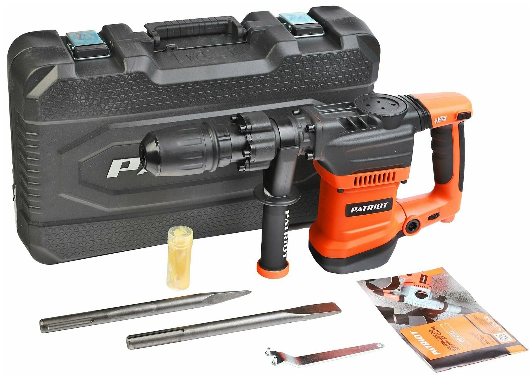 Молоток отбойный PATRIOT DB 200, 2800 уд/мин, 1375 Вт, защита от пыли, антивибрационная система, зубило и кейс в комплекте