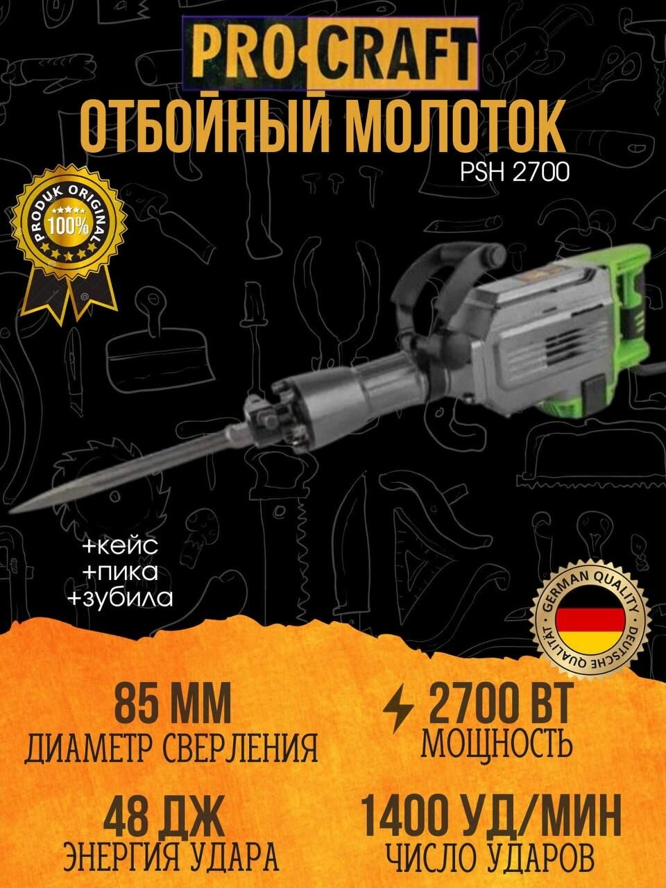 Молоток отбойный Procraft PSH2700, 48Дж, 1400уд/мин, 2700Вт интересное:
