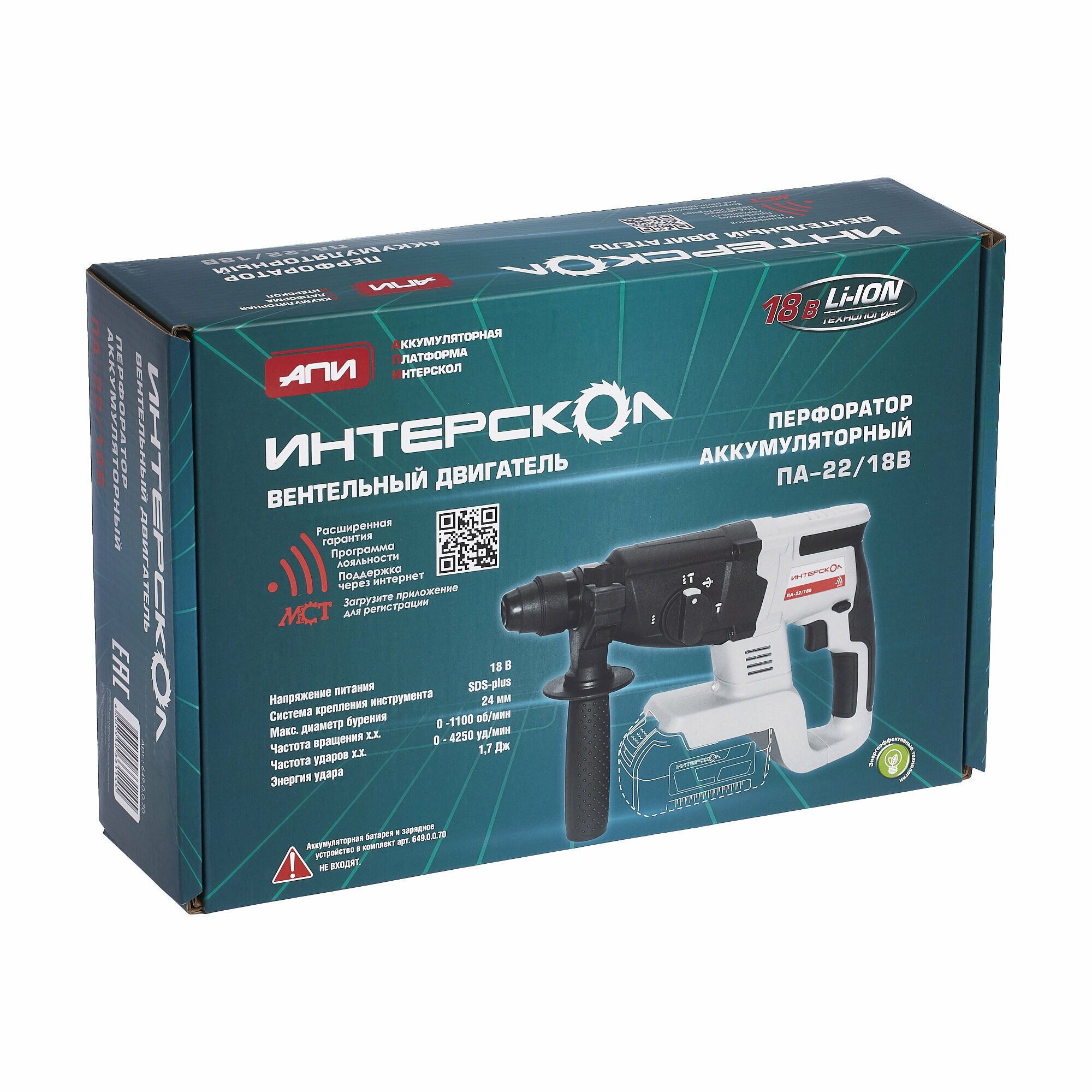 ИНТЕРСКОЛ ПА-22/18В акк. перфоратор Li-ion АПИ /кейс, без аккум. и ЗУ/ 649.0.0.70