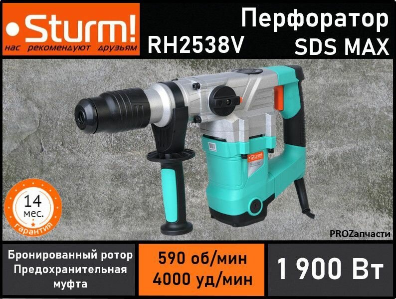 Sturm! RH2538V Перфоратор SDS-MAX 1900Вт, 10Дж, 4000уд/мин, 590об/мин, 2 режима, кейс, Sturm! [RH2538V]