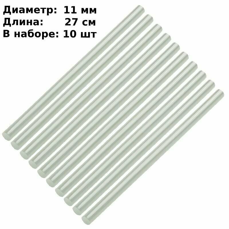 Набор прозрачных клеевых стержней для клеевого пистолета 11 мм, длина 27 см (10 шт) интересное:
