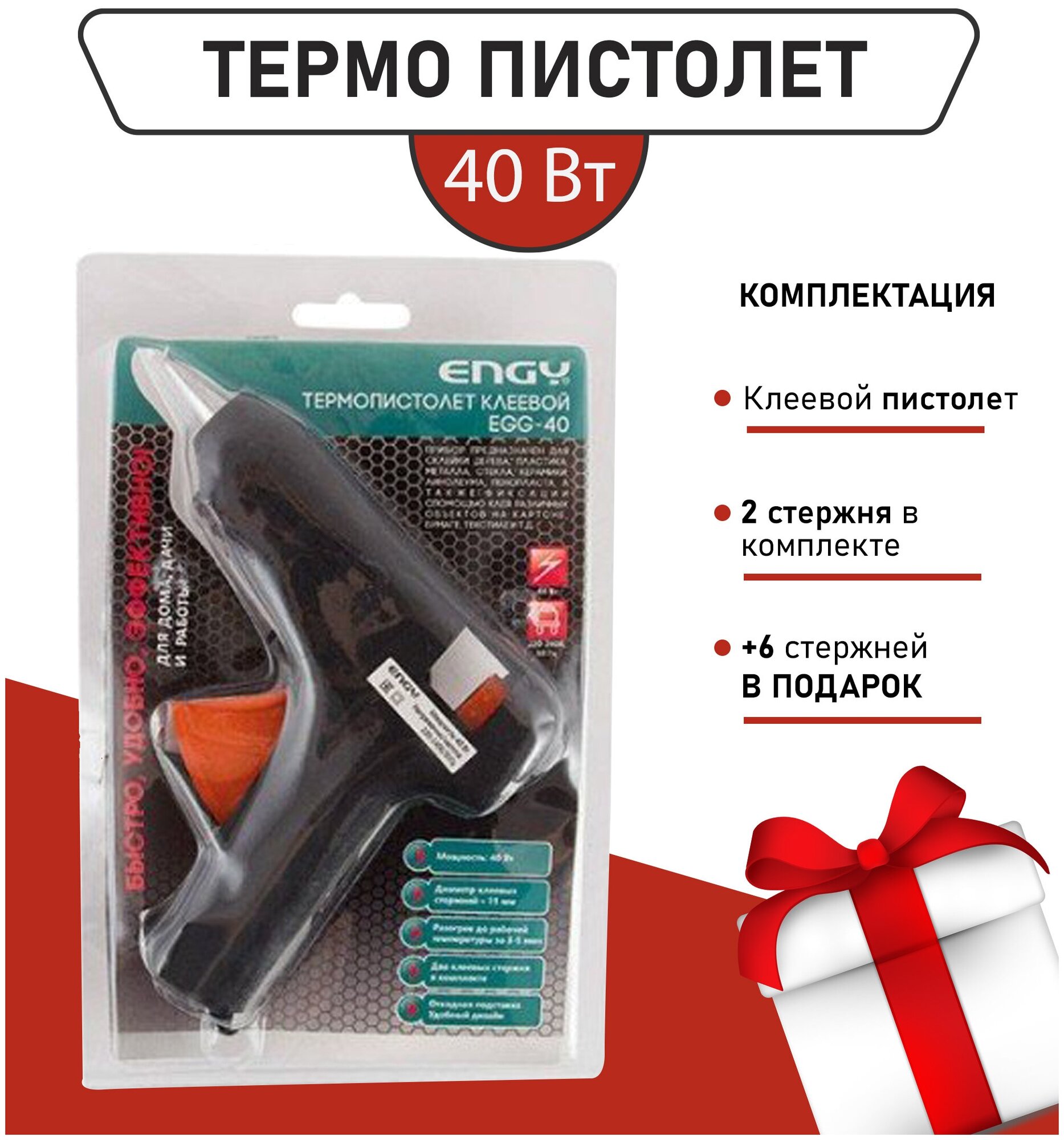 | Дополнительная информация | Пистолет клеевой ENGY EGG-40 40Вт 11мм |
