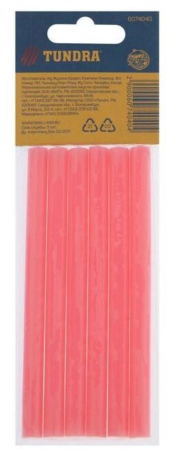 Тундра Клеевые стержни TUNDRA, 7x100 мм, розовые, 6 шт.