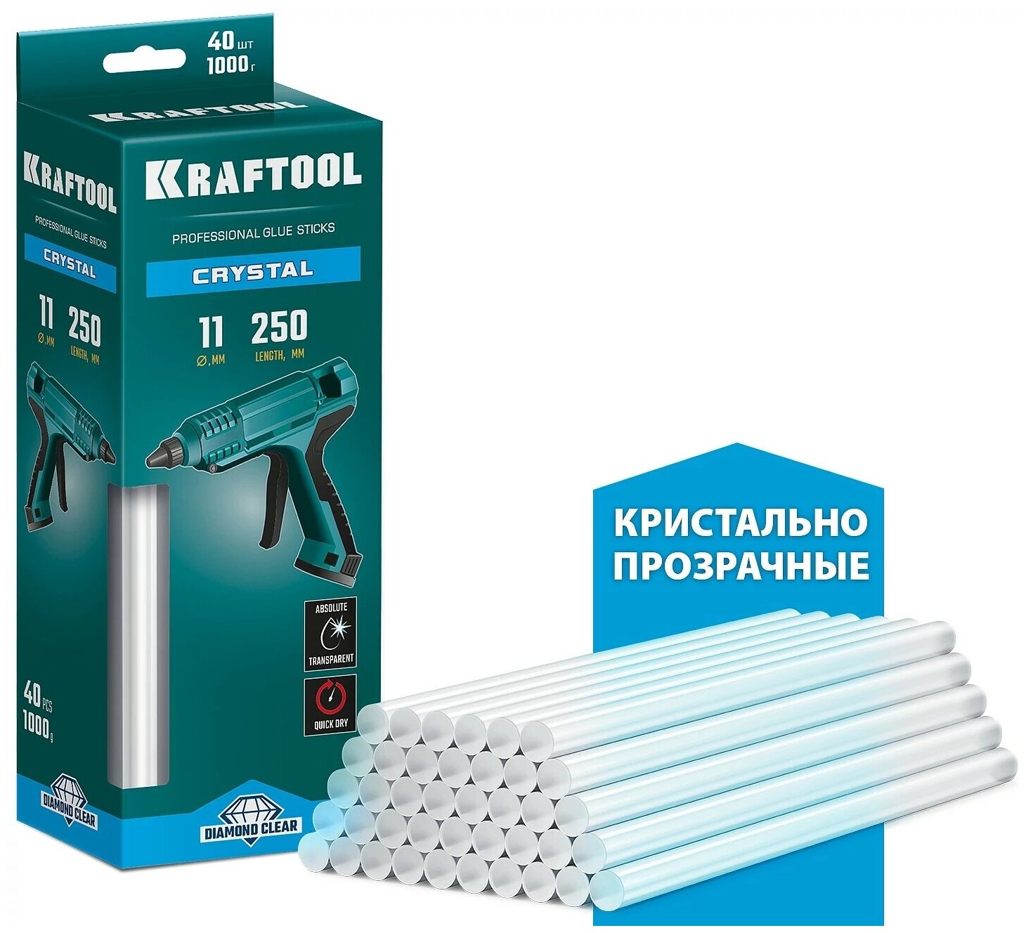 KRAFTOOL Cristal, 11 х 250 мм, 40 шт., кристально прозрачные клеевые стержни (06846-40)