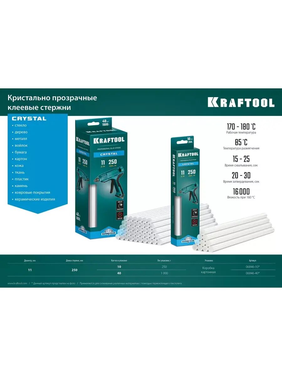KRAFTOOL Cristal, 11 х 250 мм, 10 шт., кристально прозрачные клеевые стержни (06846-10)