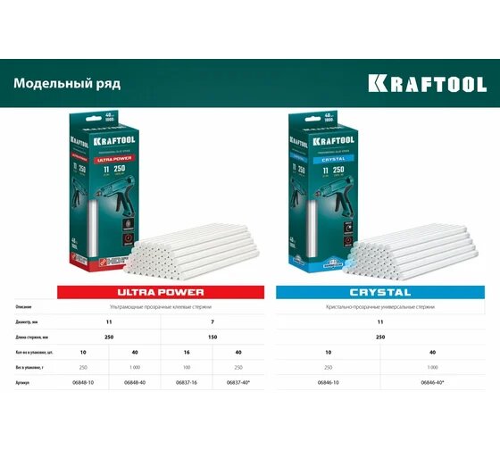 KRAFTOOL Cristal Кристально прозрачные клеевые стержни d 11x250 мм, 10 шт. 06846-10