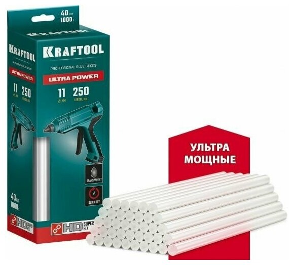 KRAFTOOL Ultra Power, 11 х 250 мм, 40 шт, ультрамощные, прозрачные, клеевые стержни (06848-40)