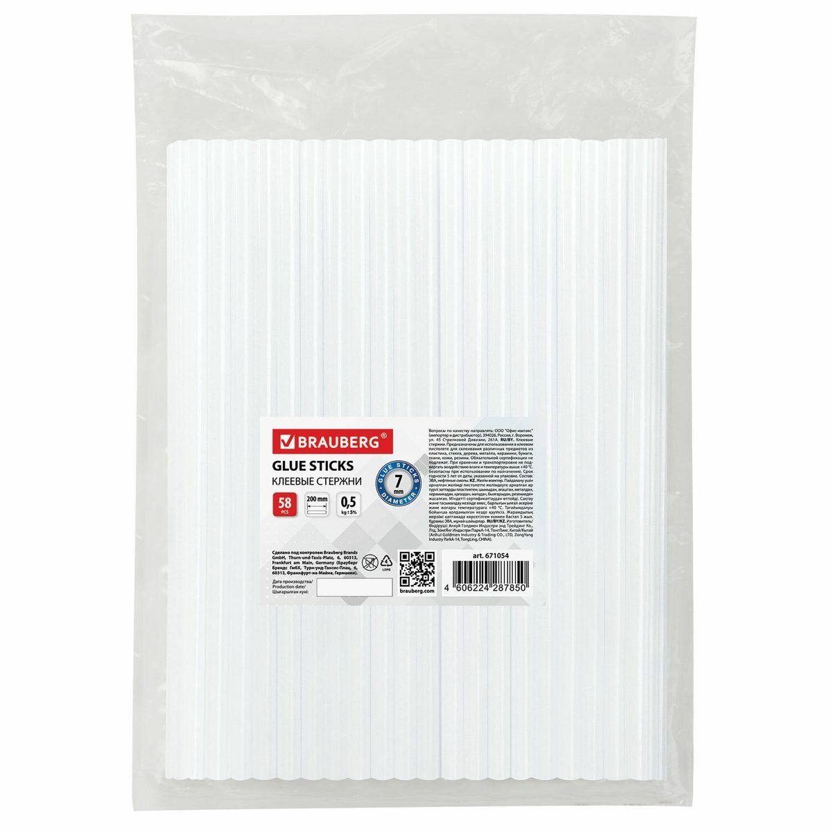 Стержни для клеевого пистолета Brauberg, 7x200мм, прозрачные, 0.5кг (58шт.), 2 уп. интересное: