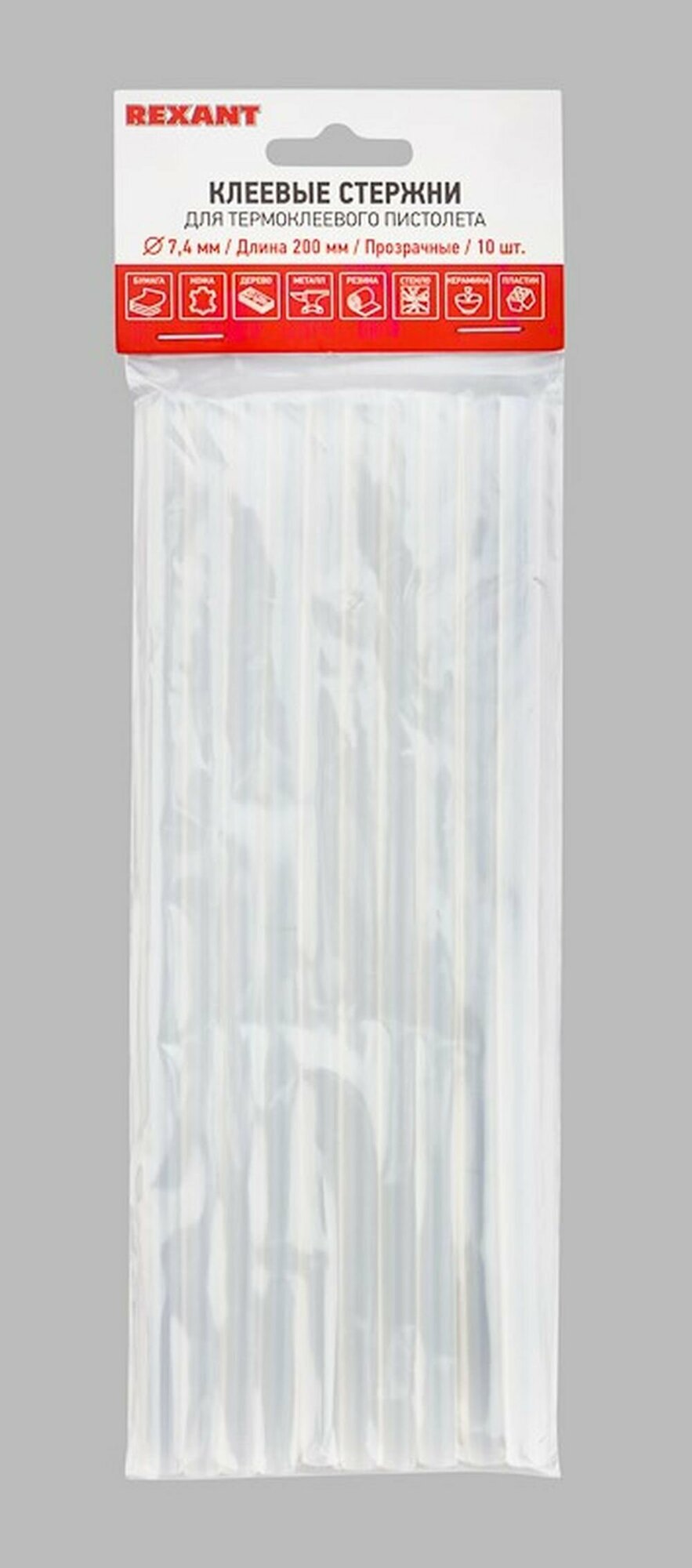 Купить Стержни клеевые REXANT Ø 7 мм, 200 мм, прозрачные (10 шт./уп.) (хедер)
