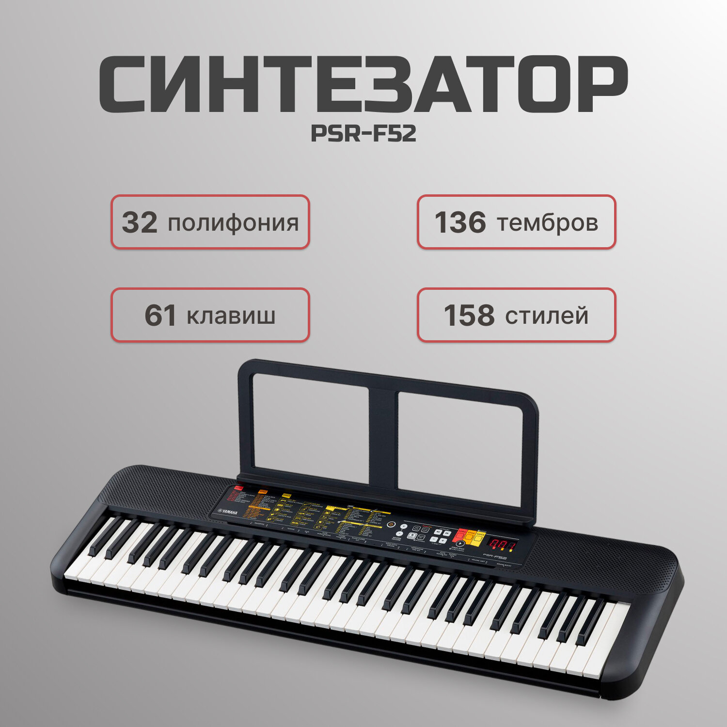 Yamaha psr-f52 синтезатор с автоаккомпанементом, 61 клавиша, 32 полифония, 136 тембров, 158 ст