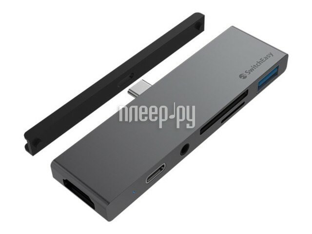 Хаб SwitchEasy SwitchDrive 6 in 1 USB-C HUB USB Type-C / mini jack 3.5 мм / MicroSD / SD / USB / HDMI серый космос (GS-105-202-253-101) интересное: