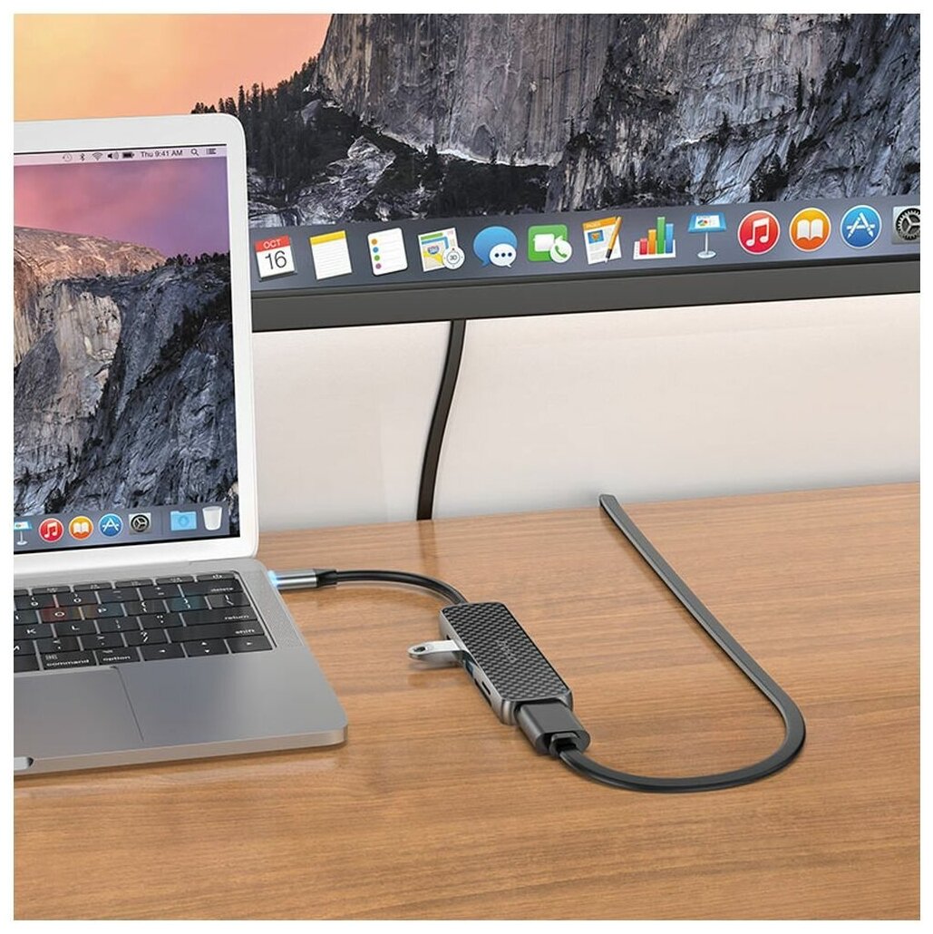 Многофункциональный Type-C хаб Hoco HB24 Easy display HDMI + USB3.0 + USB2.0 + SD + TF + PD, черный с серым