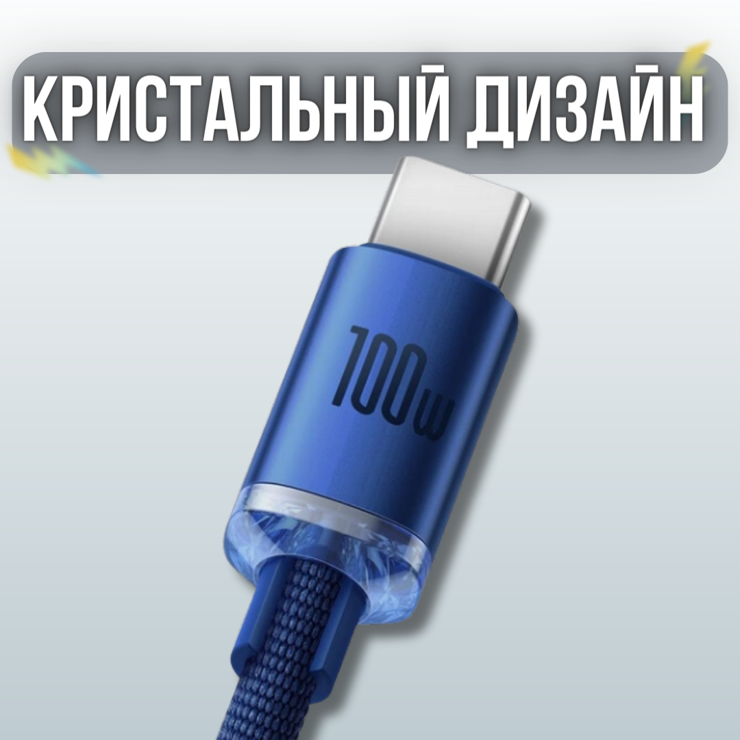 СохранитьКабель для передачи данных / быстрой зарядки / Baseus Crystal Shine Series Fast Charging Data Cable USB to Type-C 100W 1.2m Blue CAJY000403 интересное: