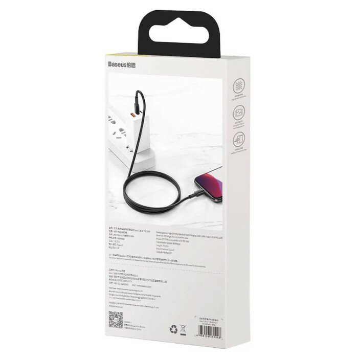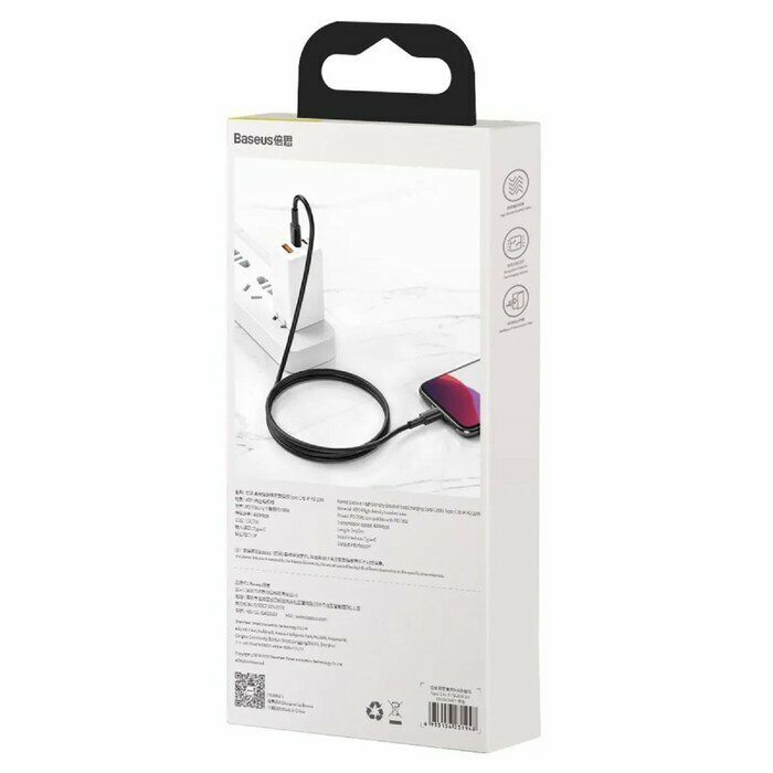 Кабель BASEUS с функцией быстрой зарядки Power Delivery, Type-C на iPhone 20Вт 2м, High Density, черный