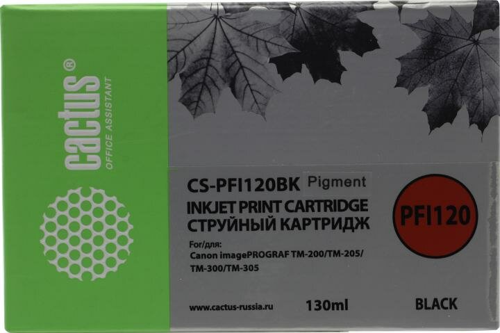 Картридж Cactus CS-PFI120BK, PFI-120 BK, черный пигментный / CS-PFI120BK