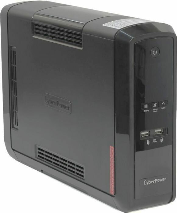 В инверсионном/батарейном режиме довольно тихий, в линейном — бесшумный. Хорошо читаемый под любым углом дисплей с графической и цифровой информацией о параметрах работы ИБП. По умолчанию дисплей активируется на 1 минуту нажатием кнопки на передней панели, но можно задействовать его включенным постоянно. Этой же кнопкой перебираются 10 цифровых параметров в т.ч. входное/выходное напряжение (проверял тестером — все точно), частота, выходная мощность, нагрузка в процентах, оставшееся время работы. Другой кнопкой устанавливаются 3 порога чувствительности перехода в батарейный режим. Точнее эти значения можно подстроить с помощью прилагаемого ПО для Windows. (Правда с Линуксом сложнее - при попытке установки соответствующего софта, с сайта CyberPower, Ubuntu 12.10 ругается – «Этот пакет плохого качества…») |