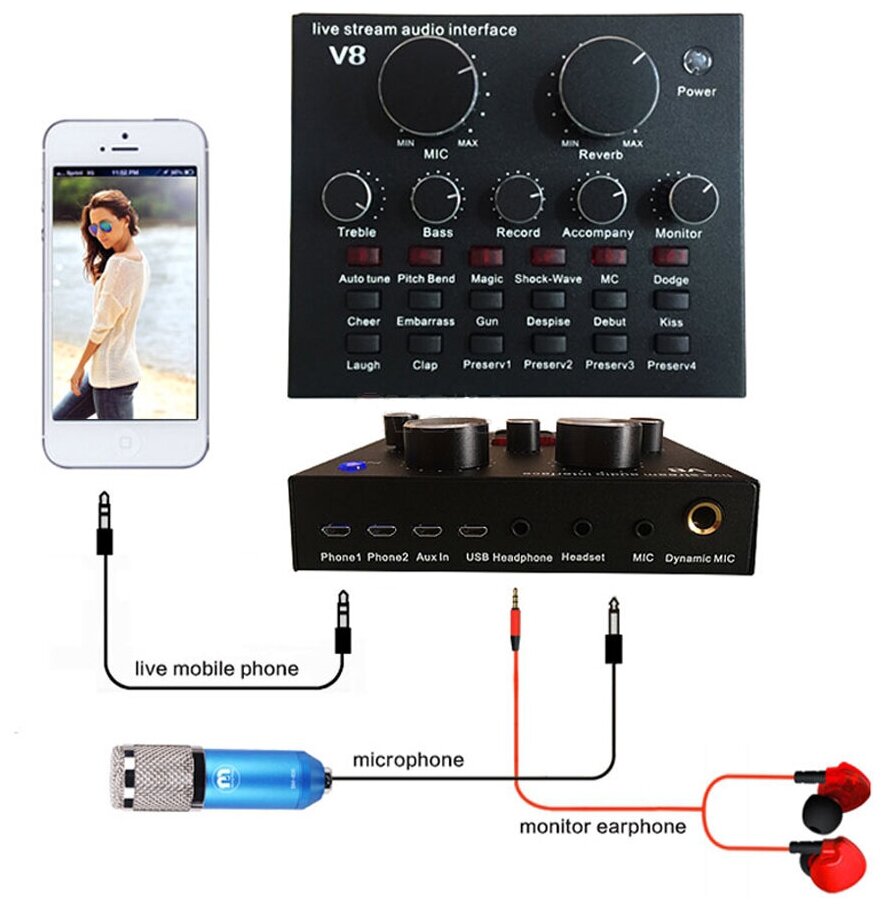 Купить Звуковая карта V8 для микрофона с Bluetooth