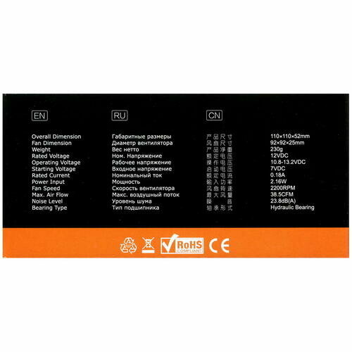 | Диаметр вентилятора | 92 мм |