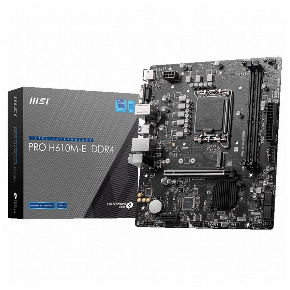 MSI PRO H610m-e DDR4 h610, Lga1700, 2 Ddr4, 1 PCI-Ex16, 1 PCI-Ex1, 1 M.2, 4 Sata3.0, 4 USB3.2Gen1,