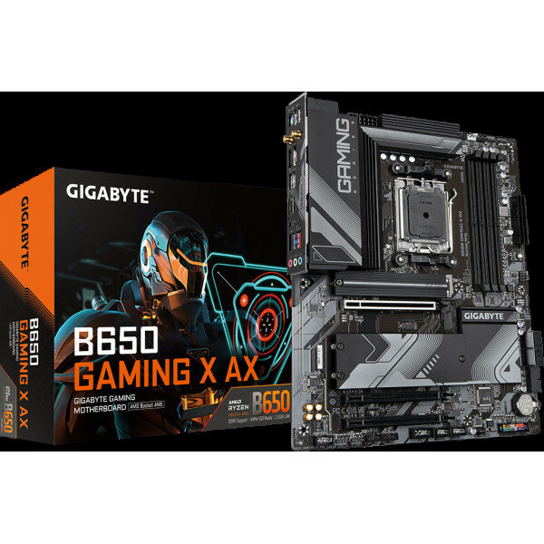 Gigabyte B650 GAMING X AX (Socket AM5, AMD B650, 4xDDR5-5200, HDMI+DP, 3xPCI-Ex16, 4xSATA3(RAID 0/1/10), 3xM.2, 8 Ch Audio, 2.5GLan, WiFi, (2+4)xUSB2.0, (5+2)xUSB3.2, (1+1)xUSB3.2 Type-C™, 1xPS/2,ATX)