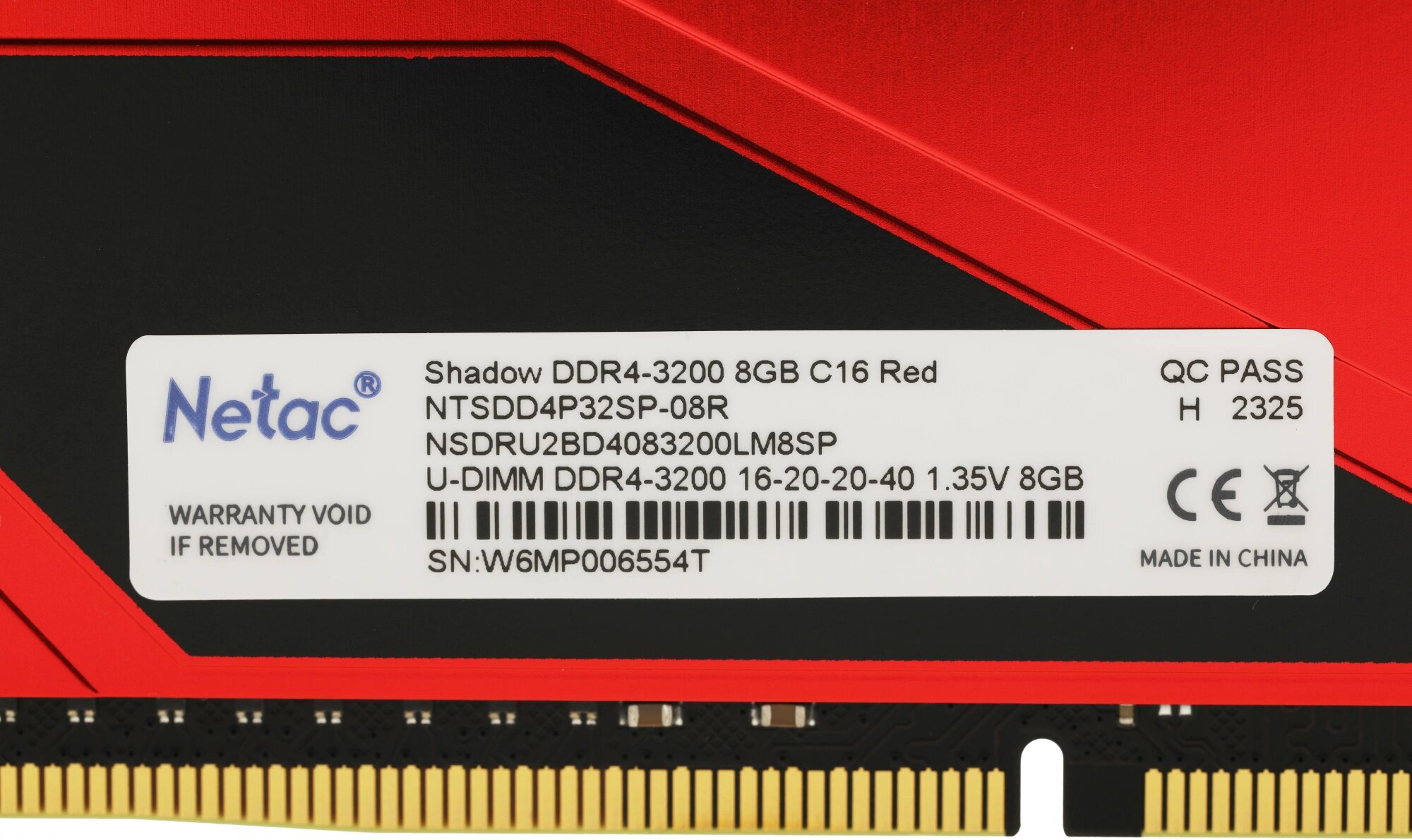 DDR4 Netac Shadow 8GB 3200MHz CL16 1.35V / Ntsdd4p32sp-08r / Red / with radiator