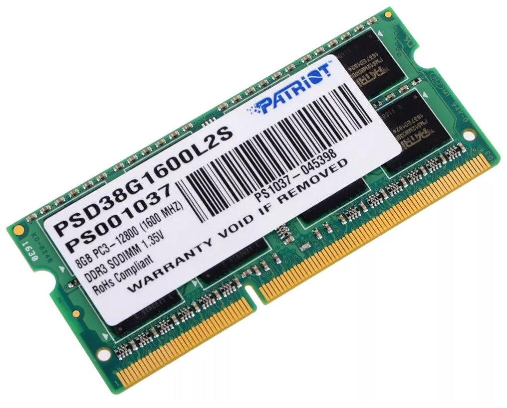 Купить Patriot DDR3 SODIMM 8GB PSD38G1600L2S PC3-12800, 1600MHz, 1.35V