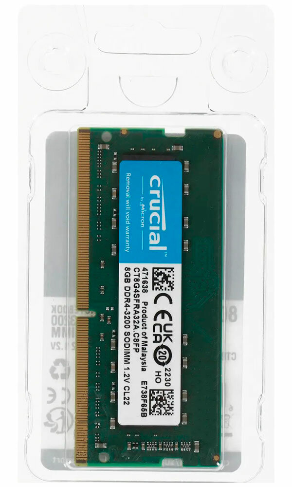 Модуль памяти Crucial SO-DIMM DDR4 8ГБ PC4-25600 3200Mhz 1.2V, CL22, CT8G4SFRA32A