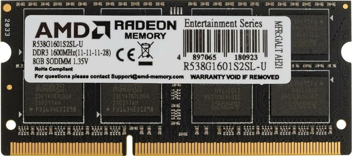 AMD So-dimm Ddr3l 8Gb 1600MHz pc-12800 (r538g1601s2sl-uo) оем R538g1601s2sl-uo .